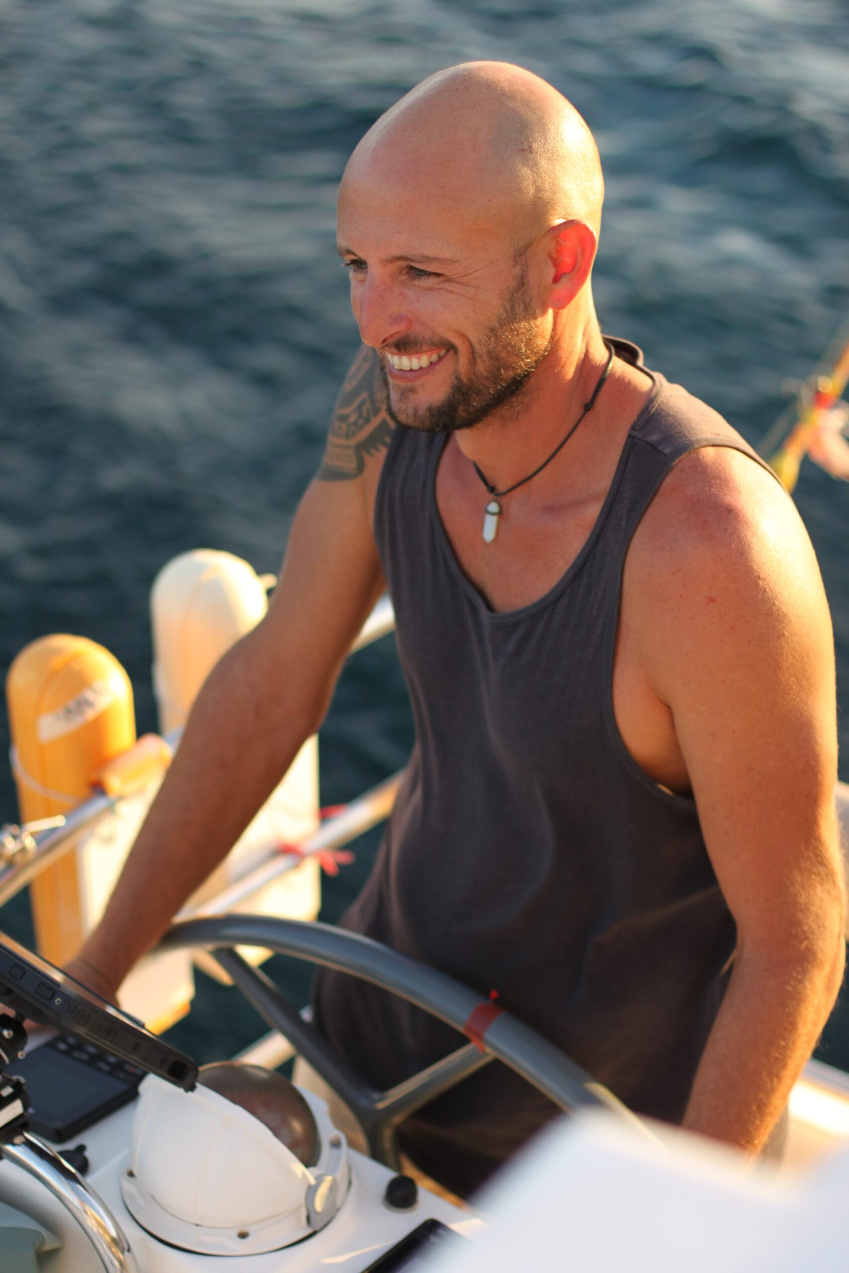 After years spent inside “the system,” chasing goals and expectations that weren’t truly his own, he chose to cast off — both literally and metaphorically — to rediscover himself. Today, he lives full-time at sea and leads experiences that integrate sport, awareness, and conviviality.